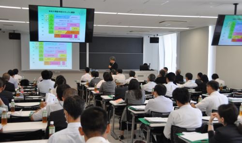 続いて入学センターから来年度入試の変更点について説明があった後、第2部として、各学部長から学部のカリキュラムや特色について説明がありました。
