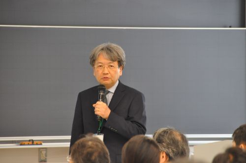 2部構成の説明会の第1部では、跡見 裕学長、松田剛明副理事長、ポール・スノードン副学長が、井の頭キャンパスの開設やグローバル人材育成の取り組みなど本学の教育方針を紹介しました。この中で松田副理事長は、緑豊かな武蔵野の地を活かした学びの社となる井の頭キャンパスの概要や三鷹市に4学部のキャンパスが集結し、学部間連携を深めた教育を行っていくことなどを説明し、「2016年度入試では志願者数が大幅に増え、優秀な学生に来ていただきました。これから、新しく整えた環境でどのように素晴らしい学生を育てていくか注力していきたい。ぜひ意欲ある生徒の皆さんに本学を薦めていただきたい」と高校教員へ呼びかけました。