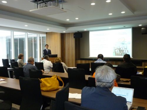 初日の4月23日午前、井の頭キャンパスに到着した一行7名は(同国保健省救急医療局・病院前診療課長、保健連帯基金の代表、国家文民警察救急部長、消防庁長官、同国赤十字社、緑十字社の各代表、救助部隊理事長)は、神谷 茂保健学部長から学部の概要説明を受けました。