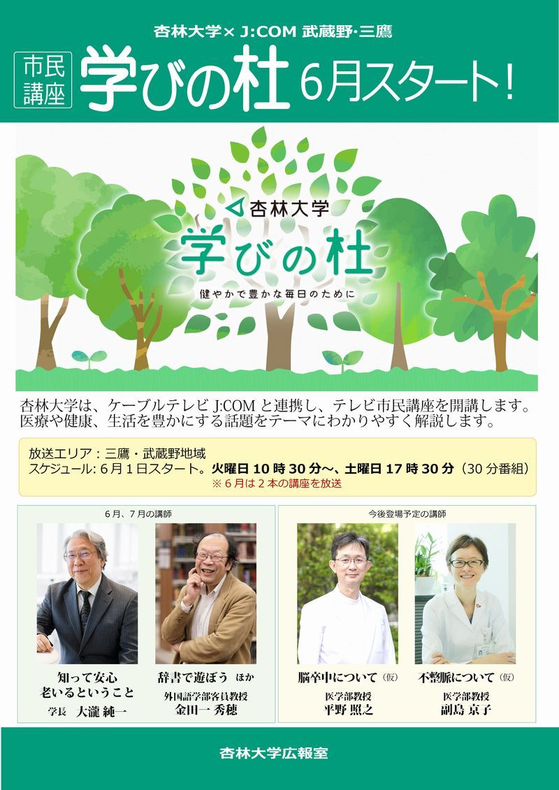 講座は、地デジ11チャンネル “J:COMチャンネル武蔵野・三鷹” で放送します。視聴するには、J:COM TVサービスに加入されているか、もしくは、お住まいの集合住宅にJ:COMが導入されているかをご確認ください。