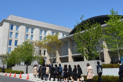 この日は朝から青空が広がる穏やかな天候に恵まれ、三鷹キャンパスのあちこちで、校舎や入学式の立て看板などを背景に写真を撮る新入生や保護者の姿が見られました。