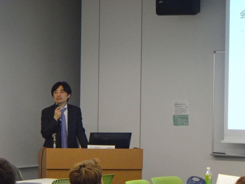 株式会社の設立手続き、公証役場における定款認証、会社と登記簿、登記情報検索サービスの話、印鑑登録証明書の重要性等の話は起業を考える社会人および本学の学生に特に感銘を与えたようです。また今日では、資本金1円でも会社が設立できる話(俗に0円で会社が設立されるといわれるが、これは厳密にいえば間違いだとのことである)や資本金と各種税制の関係の話、マイケル・ポーターの著書『競争戦略』(1980年)に基づいた差別化戦略・集中戦略の話なども社会人および本学の学生に起業への興味を与えたようです。