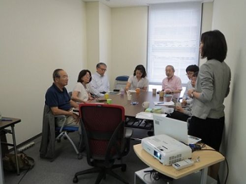 平成26年6月20日(金)、杏林CCRC研究所(三鷹産業プラザ内)で、保健学部からは下島裕美氏を講師としてむかえ、第6回杏林CCRC研究所セミナーが開催された。研究所からは蒲生、相見、松井、多田が参加した。学外からは、濱絵里子氏(一般社団法人てとて)、岡田美佐子氏(在宅ホスピスボランティアさくら)、中村克久氏(在宅ホスピスボランティアさくら)、林田昭子氏(NPO法人鷹ロコ・ネットワーク大楽)、高野修一氏(東急不動産ホールディングス(株)住生活研究所)が出席した。