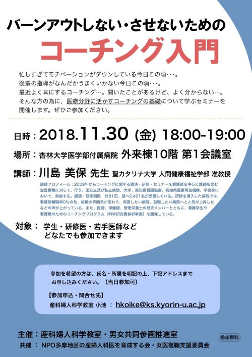 そんな方の為に、医療分野に活かすコーチングの基礎について学ぶセミナーを開催します。