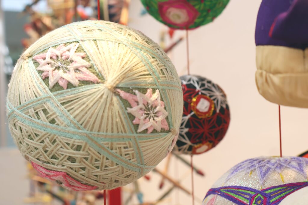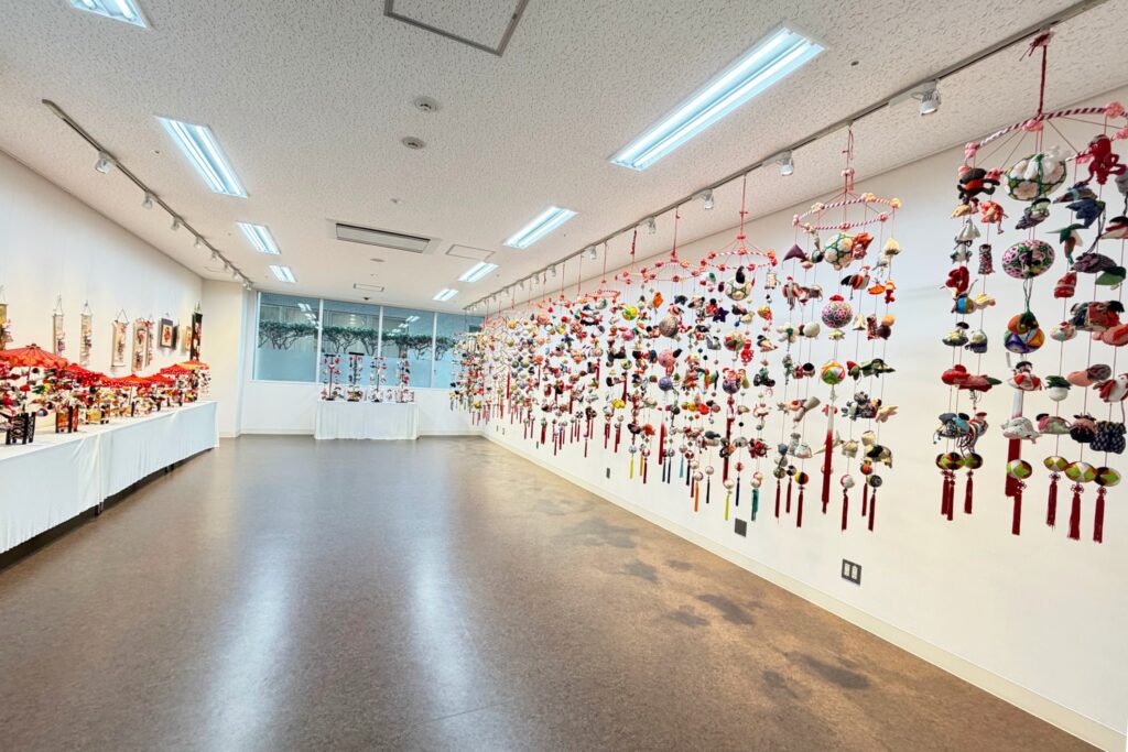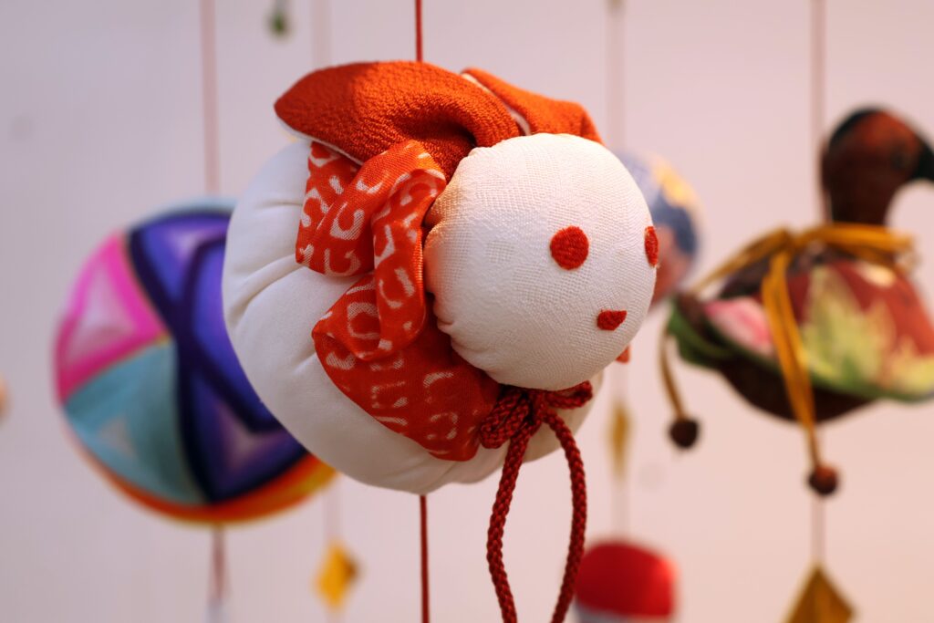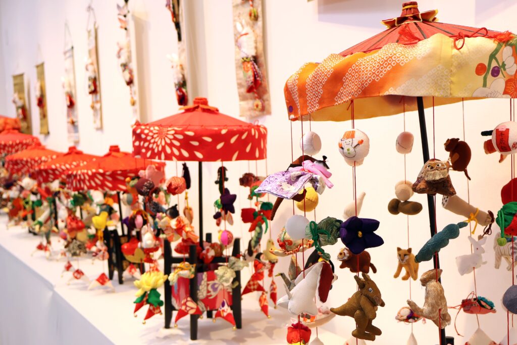 会場には、福岡県柳川市の畳表を使ったつるし雛や山形県酒田市の傘を使ったつるし雛のほか、今年の干支である馬をモチーフにした押し絵など、約50点の作品が飾られています。日本の伝統的な美しさを持つかわいらしい作品が、会場を明るく彩っています。