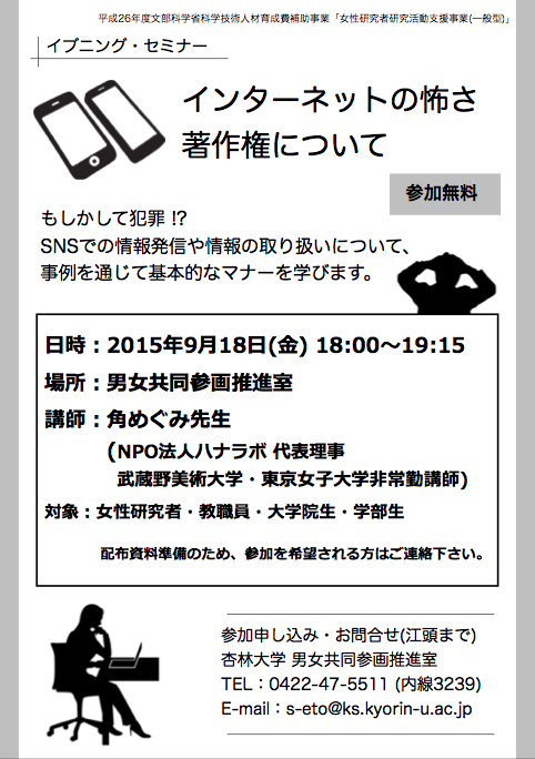 配布資料準備のため、参加を希望される方はご連絡ください。