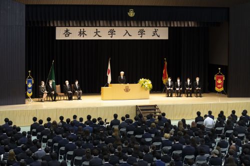 式では渡邊卓学長が、「杏林の名の由来は、良い医師・良医を杏林と呼ぶようになったという中国の故事にあります。しかし、この故事は医師に限らず、すべての人が、困っている人、助けを求める人に手を差し伸べ、支えていくことの大切さを示しています。この意味を忘れずに実践するとともに、在学中は自ら学ぶ姿勢を持ち、予測が困難な社会にあって、冷静に問題を分析し解決する力を培ってください」と式辞を述べました。