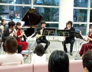 今回はフルート、オーボエ、クラリネット、ファゴット、ホルンの5つの木管楽器による木管五重奏の演奏で、クリスマスツリーのライトが灯る外来棟には美しい音色が響き渡りました。