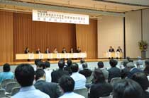 このあとパネルディスカッションが行われ、山口教授と東京都福祉保健局医療政策部の宮野收災害医療担当課長の進行のもと、東邦大学医療センター大森病院の吉原克則教授など7名のパネリストが、広域搬送と臨時医療施設などについての発表を行いました。