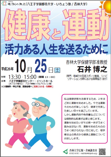 病院・診療科について【公開講演会のお知らせ】10/25(土) 「健康と運動 活力ある人生を送るために」