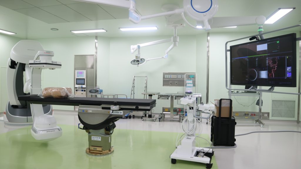 ハイブリッド手術室とは、血管撮影と手術を同時に行う高度な技術を可能にしたもので、これにより、手術の安全性や確実性を高め、患者さんの負担を軽減することができます。