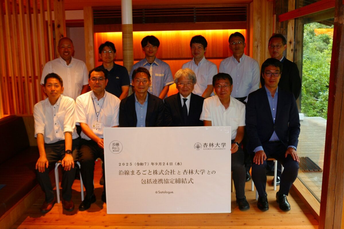 2025(令和7)年9月24日(水)、杏林大学(東京都三鷹市新川6-20-2)と沿線まるごと株式会社(東京都西多摩郡奥多摩町棚澤390)は、同社が所有・運営するレストラン棟「Satologe.(さとローグ)」にて、包括的連携協定を締結いたしました。