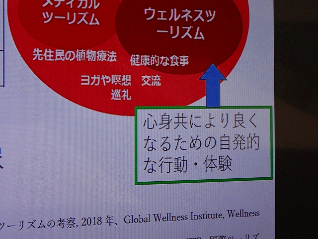 第1部では、保健学部の石井教授が「ウェルネスツーリズム概論Ⅰ」として保健医療の視点から講義を行い、第2部では、外国語学部の小堀教授が同じく「ウェルネスツーリズム概論Ⅰ」として観光学の視点から講義を展開されました。