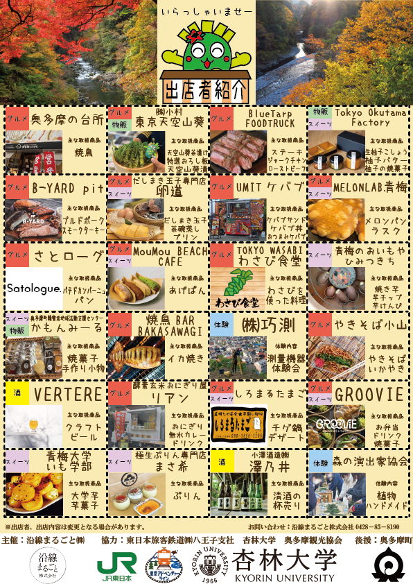 東京都も猛暑を越え、秋の深まりを感じる季節となりました。イベント当日は、奥多摩の豊かな自然とともに、地域の魅力を存分に味わえる1日となることを願っています。