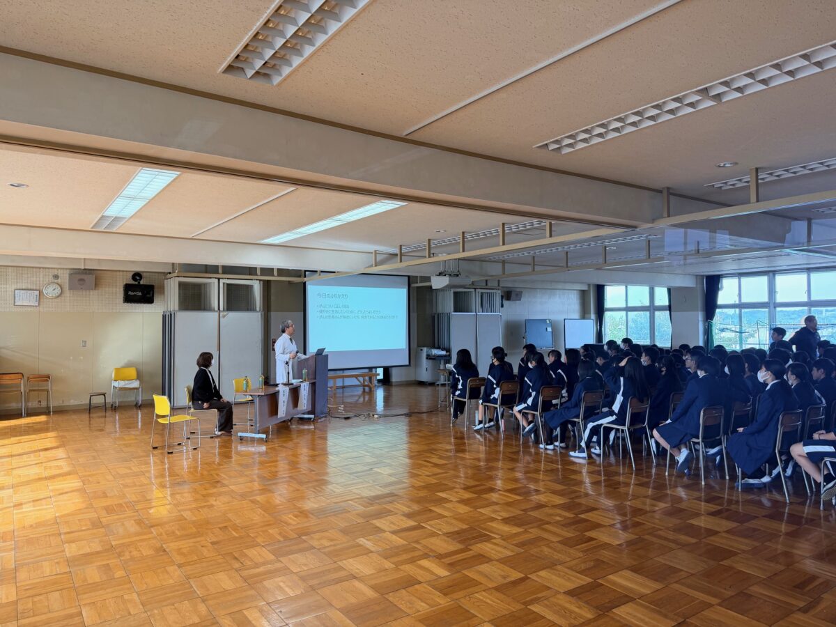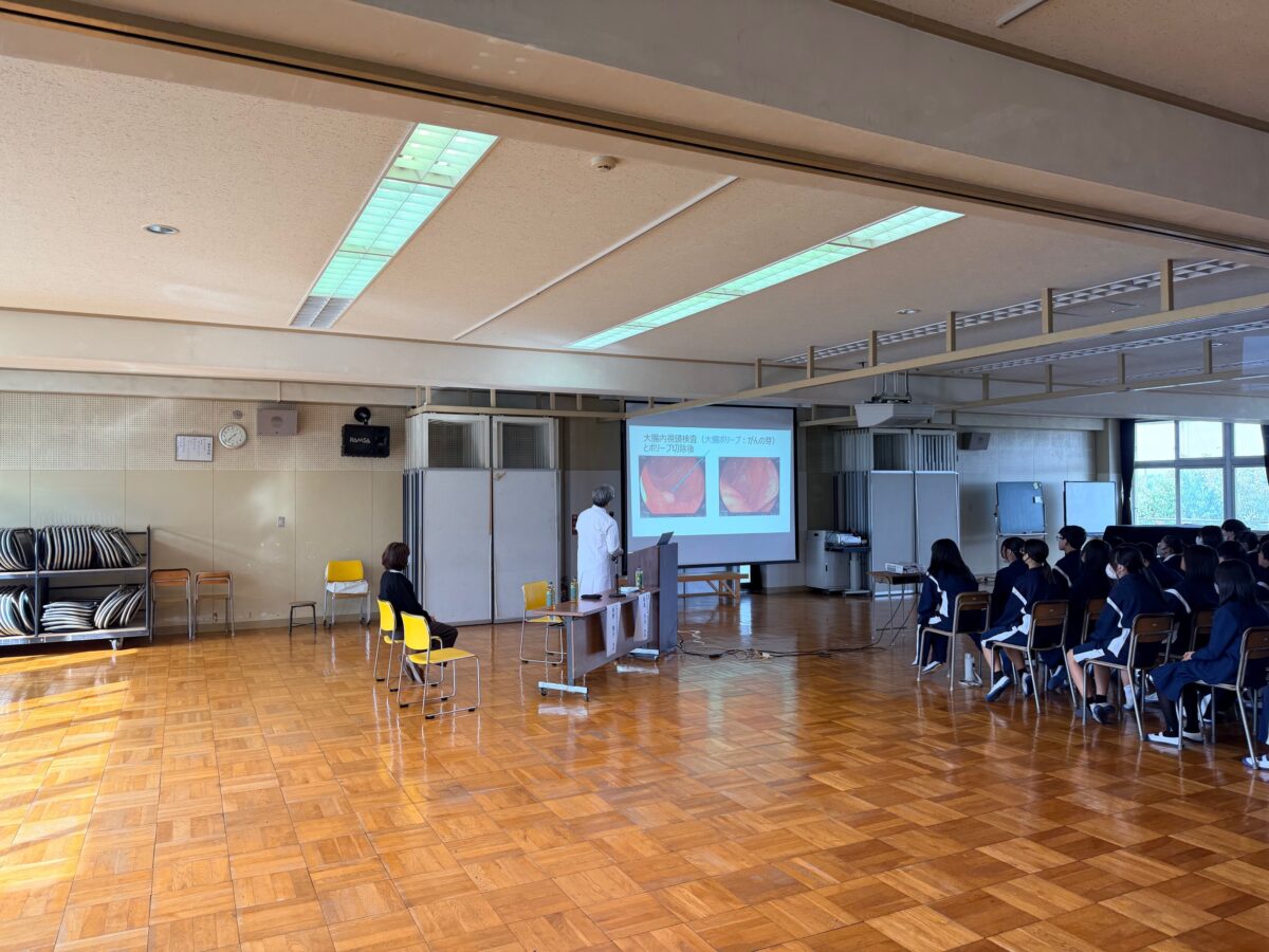 生徒たちは終始熱心に耳を傾け、質問タイムでは「動物もがんになるのですか?」「お酒の飲みすぎはがんの原因になりますか?」など、活発な質問が寄せられました。長島先生からは「良い質問ですね!」との声が何度も聞かれ、講座は大いに盛り上がりました。