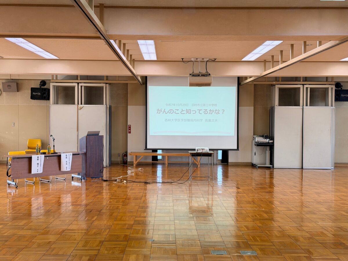 2025(令和7)年10月29日(水)、本学と包括連携協定を締結している羽村市からのご依頼を受け、羽村市立羽村第三中学校にて「がん教育」の講座を実施しました。