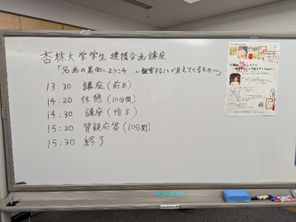2025年(令和7年)11月30日(日)、プリモホールゆとろぎ(羽村市)において、杏林大学と羽村市学生連携企画講座「名画の裏側へようこそ―観察することで見えてくるもの―」が実施されました。