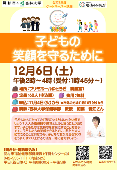 2025(令和7)年12月6日(土)、プリモホールゆとろぎ(羽村市)にて、市民向け自殺対策研修「ゲートキーパー講座」が開催されました。