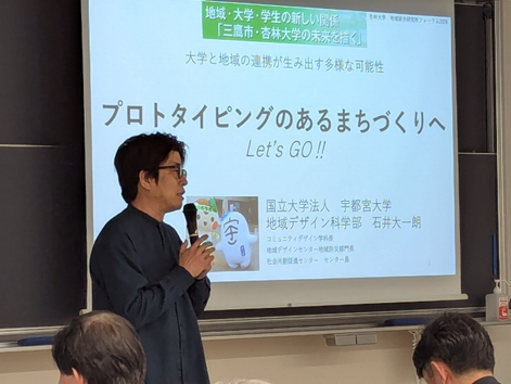 第1部基調講演では、はじめに宇都宮大学地域デザイン科学部 石井 大一朗教授に講演をいただきました。
