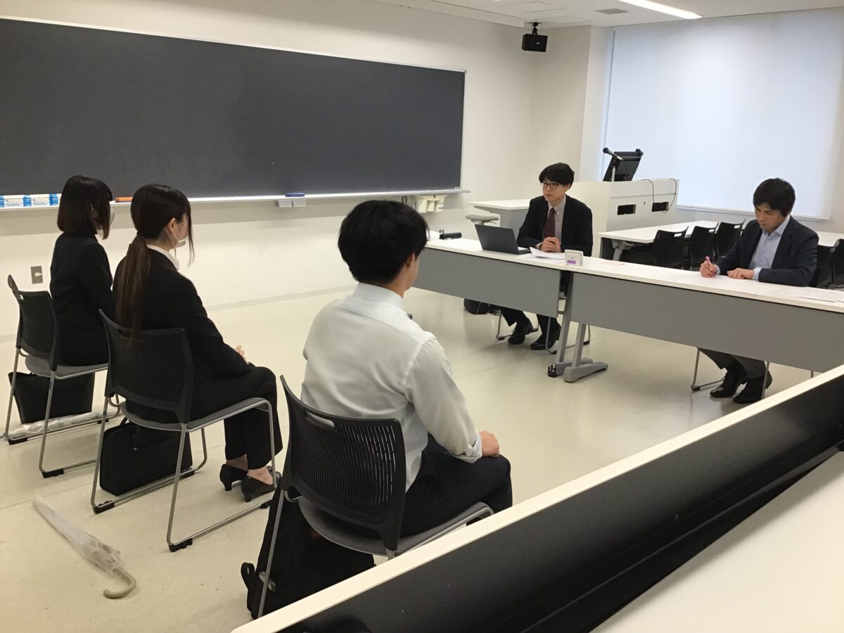 就職試験の本番同様に面接やグループディスカッションを実践する「就活トライアル」が10月11日に実施され、総合政策学部の3年生全員と履修継続中の4年生が参加しました。