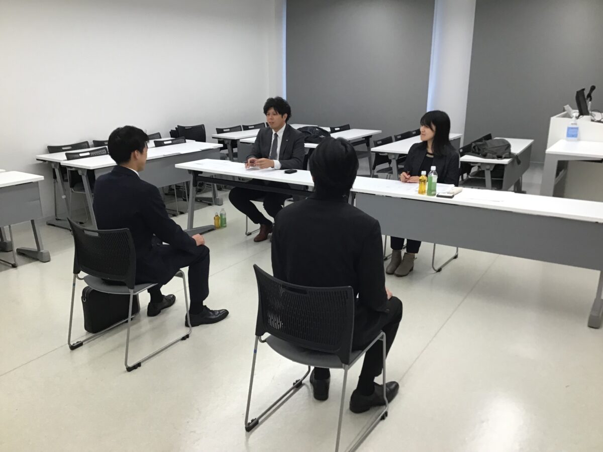 今回の「集団面接」では、志望業界の近しい学生同士で教室割り振りが組まれ、他学生の回答を参考に、自身の客観的な振り返りを行うことで、面接の経験値を高められる貴重な機会となりました。
