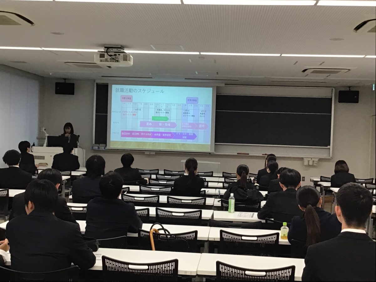 本イベントは総合政策学部の「キャリア開発演習」の一環として、毎年、前後期にそれぞれ行われており、複数の学生が模擬面接を受ける「集団面接」、与えられたテーマについて議論をする「グループディスカッション」を経験しました。また、面接に臨む際の「マナー講座」や、今後の就活方法を学ぶ「キャリア講座」も実施し、就職活動に向けて準備を進めていきました。