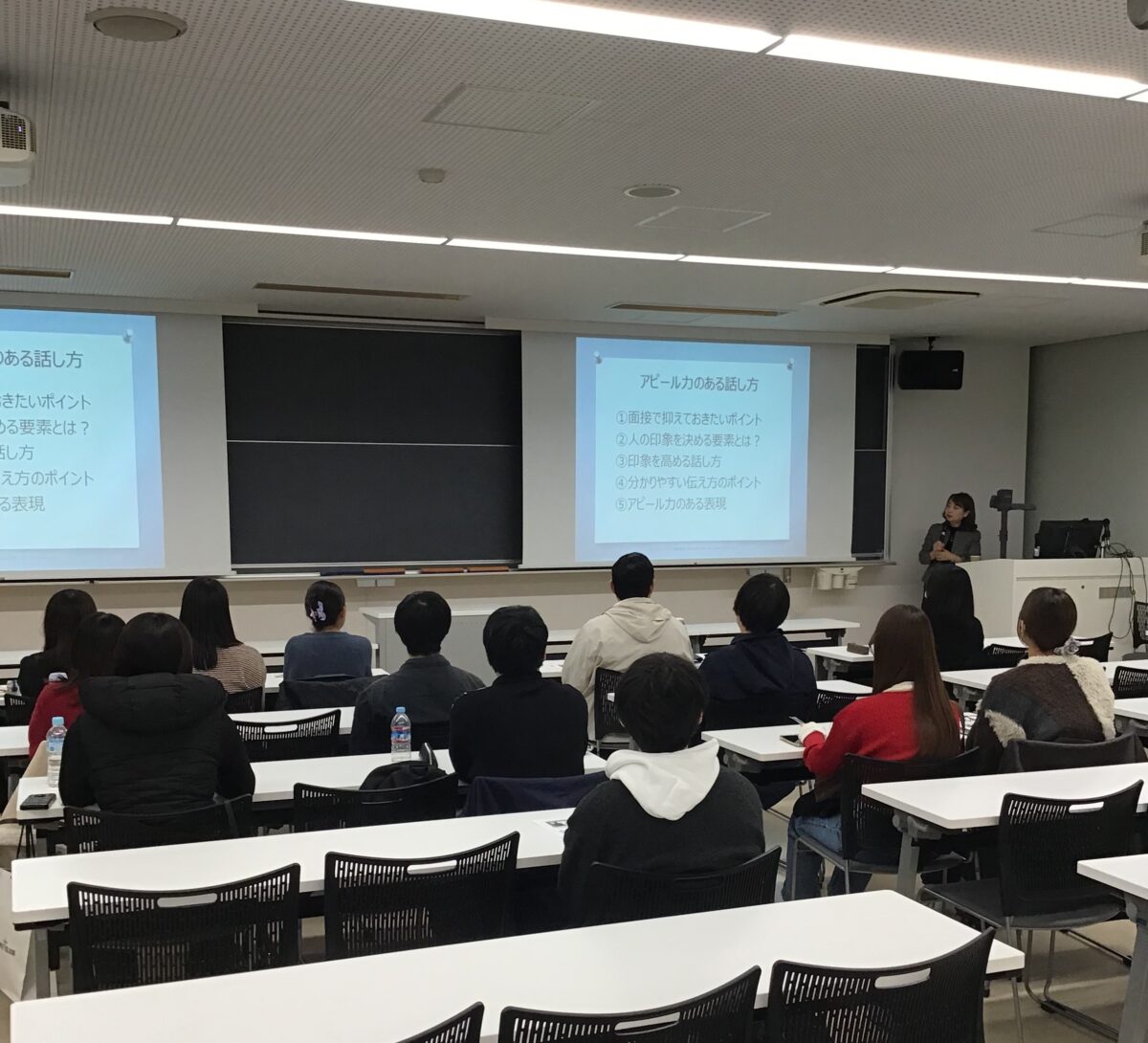 参加した学生からは「腹式呼吸や話す速度など今まで意識したことの無い分野まで考えることができた。」「話し方や表情、意識まで細かく触れていただいて非常に参考になった」などの感想が聞かれました。