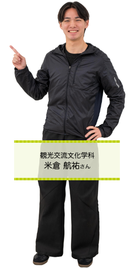 私は入学前はブライダル業界に興味があり、観光交流文化学科を目指しました。しかし、大学で学ぶにつれて「私ってこういうことに興味があったのだ」と自分のことを知る瞬間が多くありました。国際協力もその一つです。観光産業は多様な分野から成り立っているので、私のように興味関心や趣味が広いと選択に迷ってしまうと思います。それでも、自分の知りたい!という気持ちを大切にしながら学べる環境は幸せだと感じています。皆さんが沢山の学びと素敵な人たちとの出会いに恵まれることを願っています。