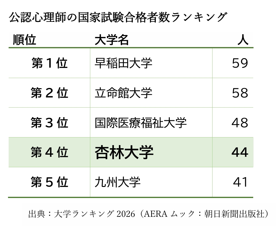 臨床心理学科卒の公認心理師合格者数が第4位に!
