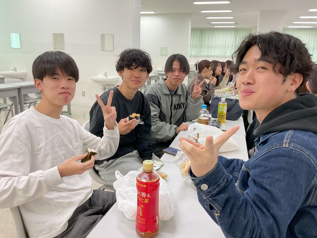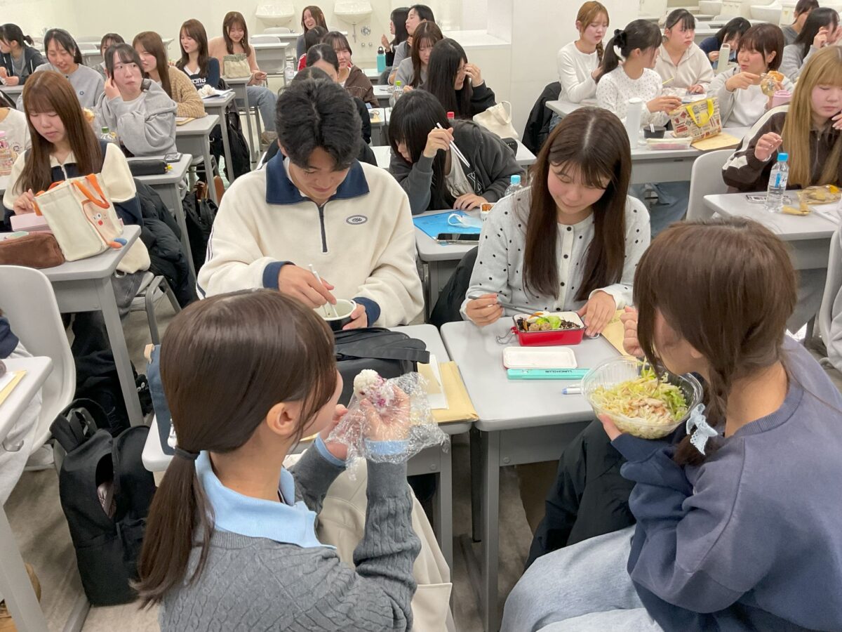 それでも、ランチタイムになると、あちこちで笑顔あふれる光景が見られました。食事を楽しみながら自然と会話が弾み、LINEを交換したり、新しい友達ができたりと、初対面同士とは思えないほど和やかな雰囲気に包まれていました。緊張もほぐれ、これから始まる大学生活への期待が感じられる、楽しいひとときとなりました。