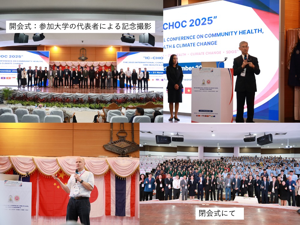 2025年11月19日から21日にかけて、タイ・マハサラカム大学において The 2025 International Conference on Community Health, One Health & Climate Change が開催されました。本学術会議はマハサラカム大学公衆衛生学部が主催し、杏林大学も共催として参画しました。オンライン参加も含めて東・東南アジアを中心に多くの研究者や学生が、地域保健、気候変動、One Healthに研究報告を行い、活発な議論が行われました。