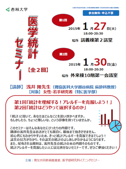 1月27日(火)・30日(金)に、統計学セミナーを開催。