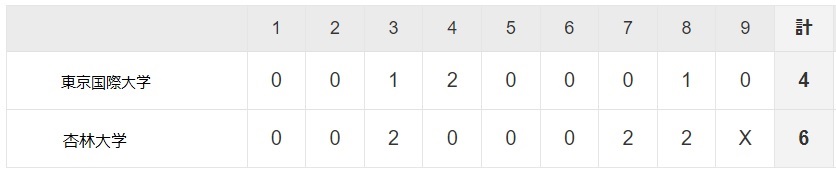 2日目 10月19日(日) 杏林大学〇 6対4 東京国際大学●