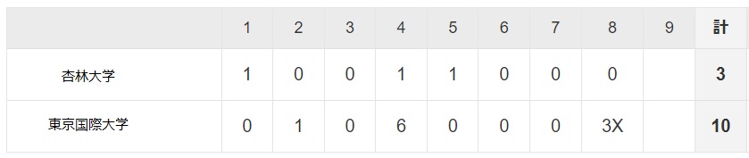 1日目 10月18日(土) 杏林大学● 3対10 東京国際大学〇 8回コールド負け