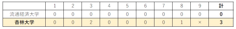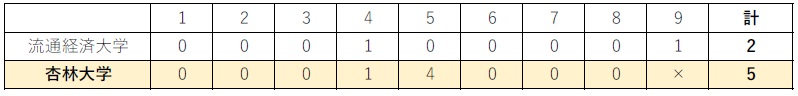 3日目 4月4日(土) 流通経済大学● 2対5 杏林大学〇
