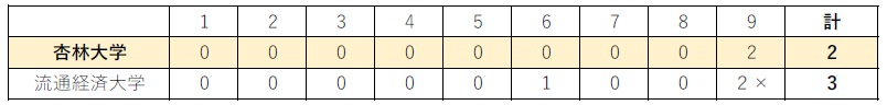 2日目 4月3日(金) 杏林大学● 2対3 流通経済大学〇