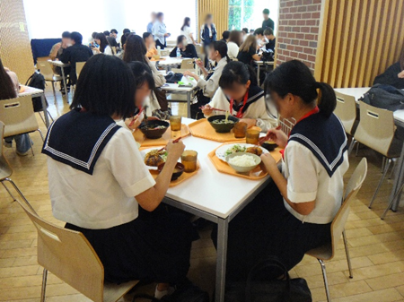 また、昼食は大学の学食や学内コンビニエンスストア、キッチンカーが使用でき、昼休み時間の図書館開放も行いました。