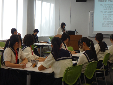 はじめに、高校生たちは交流プラザで八木橋高大接続推進室長からオリエンテーションを受けました。その後、保健学部、総合政策学部、外国語学部で、希望を元に選択していた講義に参加し、2時限から3時限、希望者は4時限まで授業に参加しました。