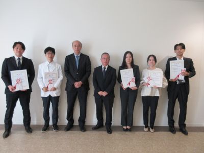 第14回研究奨励賞:小栗典明先生、芝ア翔平先生、松谷瞳先生、松嶋真哉先生、宮岡智花先生 (3名欠席)