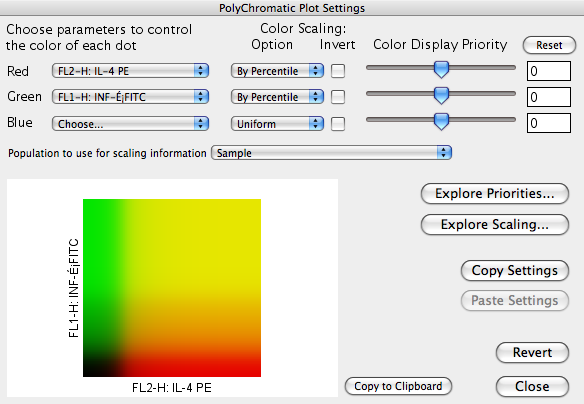 | FlowJo 8.7が出荷されています。 新しい機能として特に注目したいのが「The PolyChromatic Plot」。蛍光強度のインテンシティに合わせてドットプロットをグラデーション化する新しいプロットスタイルです。 | |