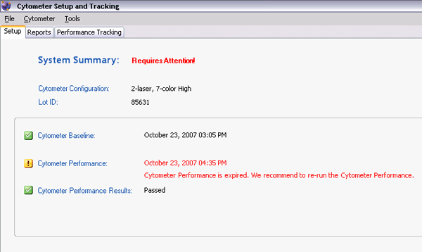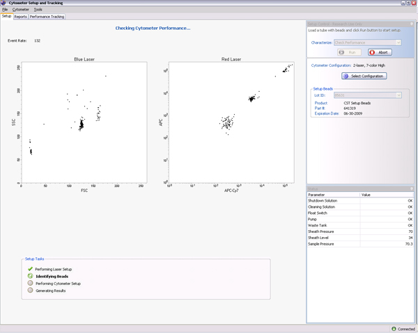 FACSDiva v6.0は、専用ビーズ(CSTビーズ)を使用してFACS本体の自己診断機能や機器設定条件の自動セットアップ機能が行える「The CS&T system」を標準でバンドル。従来のバージョンと比較し、機器の精度管理・モニタリングを短時間かつ簡単に行える特徴を持っています。