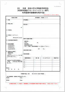 • 2枚目は、教室所属の教員が科研費等の公的資金を取得している場合(FCM部門のユーザーではなくてもかまいません)、間接経費より登録料金の補助が行われます。当該申請を研究推進センターへ毎年行いますので、ご記入ください。