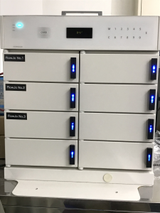 FlowJoドングル貸出管理システムは、職員証に埋め込まれているFeliCaチップを認証方式としたセキュリティが高いイトーキ製システマキーユニットIIシリーズ SKUN-8CSを使用しています。