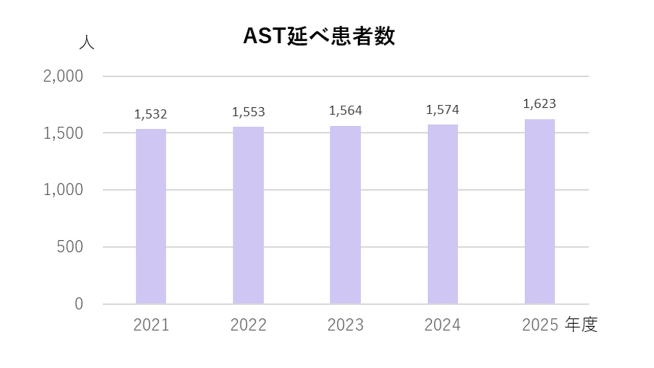 ASTは上記項目について院内横断的に監視し、能動的に介入するチームで、医師・薬剤師・臨床検査技師・看護師を含む多職種で構成されます。杏林大学病院では年間約1600症例への介入を行っており、個々の症例に合わせた治療を提案し、主治医グループと共に感染症の治癒を目指します。