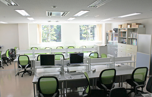 | 入口付近は事務スペース、 奥は医局員スペースです。 |
